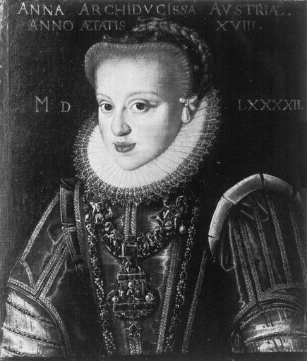 Keywords: Anna Austriaczka.jpeg Artist Austria Portrait of Archduchess Anna Habsburg 1592 Oil on canvas cm 61 53 Institution Germanisches Nationalmuseum Gm 661 http //worldroots com/brigitte/gifs5/annaaustria1573-2 jpg worldroots com Copyright expired PD-Art other versions PD-old-100 16th-century unidentified court painters 1592 16th-century portrait paintings in the Germanisches Nationalmuseum 1592 Anna of Austria 1573-1598 1592 1592 oil on canvas paintings Portrait 1592 portrait paintings 16th-century oil portraits of women at half length 1592 Black and white reproductions of portrait paintings in color 1592 Portrait paintings with inscriptions 1592