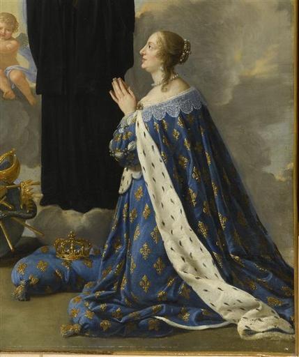 | Keywords: Anna champaigne.jpg Anna of Austria with her children praying to the Holy trinity with St-Benedict and his sister St-Scholastica detail Queen Anna 1646 Oil on canvas cm 106 138 Institution Versailles http //mesdamesdefrance mabulle com/index php/2007/06/19/70473-reines-de-france-troisieme-partie-branche-des-bourbons 000PE006982 other versions <gallery>AnnaofAustria04 jpg</gallery> PD-old-100 DEFAULTSORT Champaigne; Anne of Austria Portrait paintings by Philippe de Champaigne 17th-century portrait paintings in the Musée national du Château de Versailles Portraits of Anne of Austria with Louis XIV as a child 1646 oil on canvas paintings in France Portrait 1646 portrait paintings from France 17th-century oil portraits of women at full length 17th-century paintings of kneeling women 17th-century profile portrait paintings of women Baroque profile portraits of women Blue cushions Crowns on cushions in portrait paintings Details of 17th-century paintings Details of French paintings Details of portrait paintings Paintings with ermine clothing Females with pearl necklaces in art Files uploaded by Shakko from various sources Mantle fleurdelisé in portrait paintings Portraits with putti State robes of French royalty |