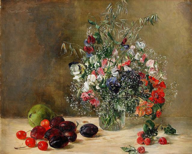 | Keywords: Anna Munthe-Norstedt-Stilleben med blommor och frukter.jpg Artwork title Still Life with Flowers and Fruits Stilleben med blommor och frukter creator Anna Munthe-Norstedt 1899 oil canvas cm 39 46 5 Anna Munthe-Norstedt 1899 signature upperleft Auktionsverket se Public domain Other versions PD-old-auto 1936 Anna Munthe-Norstedt 1899 paintings 1890s still-life paintings Oil still life paintings Paintings with signatures upper left Paintings with years of production artist Plums in paintings Paintings of cherries 19th-century oil on canvas paintings Raspberries in art 1890s paintings in private collections 19th-century still life paintings of flowers in glass vases |