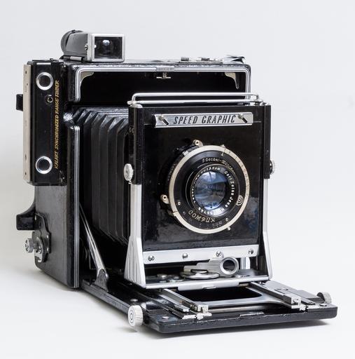 Keywords: anniversary speed graphic anniversaryspeedgraphic large format film camera largeformatfilmcamera electronics camera lens indoor Serial No. 325158. It's from 1943 from what i can find based on that serial number. I would like to restore it, needs a new ground glass, the shutter in the lens is broken, the focal plane shutter fires but the speeds are all pretty much the same, the rangefinder is cloudy and the glass shroud is rather perished. Other than the mechanical problems it's in pretty decent aesthetic condition. Camera-wiki.org - Graflex Speed Graphic Serial No. 325158. It's from 1943 from what i can find based on that serial number. I would like to restore it, needs a new ground glass, the shutter in the lens is broken, the focal plane shutter fires but the speeds are all pretty much the same, the rangefinder is cloudy and the glass shroud is rather perished. Other than the mechanical problems it's in pretty decent aesthetic condition. Camera-wiki.org - Graflex Speed Graphic