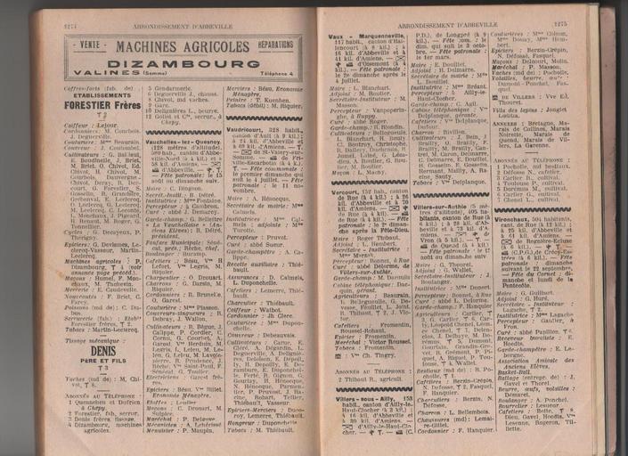 Keywords: Annuaire générale d'Abbeville en 1948, p 1274-1275 de Valines (Morceaux) à Vironchaux (Mx).jpg Annuaire_générale_d'Abbeville_en_1948 _p_1274-1275_de_Valines_ Morceaux _à_Vironchaux_ Mx own 2007-11-25 Groteddy Abbeville Directories of Somme Vaux-Marquenneville in 1948 Valines Vercourt Villers-sous-Ailly Villers-sur-Authie Vironchaux Vauchelles-les-Quesnoy Vaudricourt Somme |