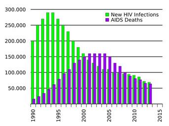 Keywords: Annual Zimbabwe AIDS deaths.svg translate yes en New HIV infections each year and AIDS deaths occurring during the year in Zimbabwe; data from http //www unaids org/en/media/unaids/contentassets/documents/document/2014/2014gapreportslides/HIV2013Estimates_1990-2013_22July2014 xlsx UNAIDS GAP Report 2014 2014-10-19 own Delphi234 other versions cc-zero AIDS statistics Health in Zimbabwe Uploaded with UploadWizard |