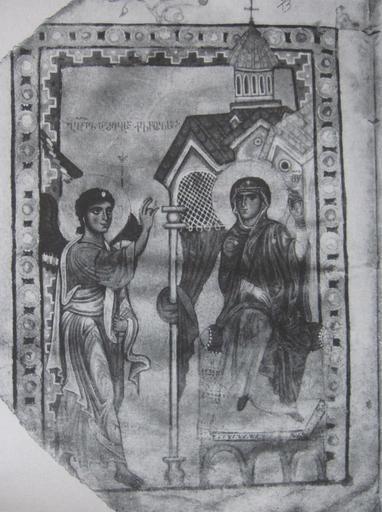 | Keywords: Annunciation (Georgian Gospels, 13th c.).jpg en The Annunciation from the Georgian Gospels of the 13th century ამირა აშვილი შ ქართული ხელ ვ ების ისტ რია -თბ 1971 Creator Unknown century 13 PD-art Miniatures of annunciation Medieval art of Georgia Georgia in the 13th century Asomtavruli manuscripts Source ამირა აშვილი შ ქართული ხელ ვ ების ისტ რია -თბ 1971 |