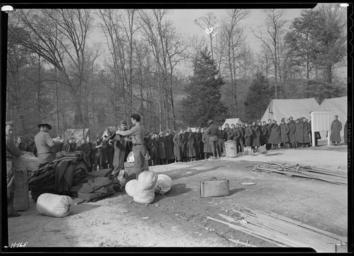 | Keywords: nara:arcid=532783 u.s. national archives usnationalarchives lewis hine lewishine blackandwhite monochrome photo border outdoor black and white Original Caption: Another view of the issuing of equipment to the new arrivals at CCC Camp, TVA #23, between Walker's Ford and Lone Mountain, Tennessee, November 1933 U.S. National Archives’ Local Identifier: 142-H-165 Photographer: Hine, Lewis Subjects: New Deal, 1933-1939 Rural areas Tennessee (United States, North and Central America) state Water projects Persistent URL: research.archives.gov/description/532783 Repository: Still Picture Records Section, Special Media Archives Services Division (NWCS-S), National Archives at College Park, 8601 Adelphi Road, College Park, MD, 20740-6001. For information about ordering reproductions of photographs held by the Still Picture Unit, visit: www.archives.gov/research/order/still-pictures.html Reproductions may be ordered via an independent vendor. NARA maintains a list of vendors at www.archives.gov/research/order/vendors-photos-maps-dc.html Access Restrictions: Unrestricted Use Restrictions: Unrestricted Original Caption: Another view of the issuing of equipment to the new arrivals at CCC Camp, TVA #23, between Walker's Ford and Lone Mountain, Tennessee, November 1933 U.S. National Archives’ Local Identifier: 142-H-165 Photographer: Hine, Lewis Subjects: New Deal, 1933-1939 Rural areas Tennessee (United States, North and Central America) state Water projects Persistent URL: research.archives.gov/description/532783 Repository: Still Picture Records Section, Special Media Archives Services Division (NWCS-S), National Archives at College Park, 8601 Adelphi Road, College Park, MD, 20740-6001. For information about ordering reproductions of photographs held by the Still Picture Unit, visit: www.archives.gov/research/order/still-pictures.html Reproductions may be ordered via an independent vendor. NARA maintains a list of vendors at www.archives.gov/research/order/vendors-photos-maps-dc.html Access Restrictions: Unrestricted Use Restrictions: Unrestricted |