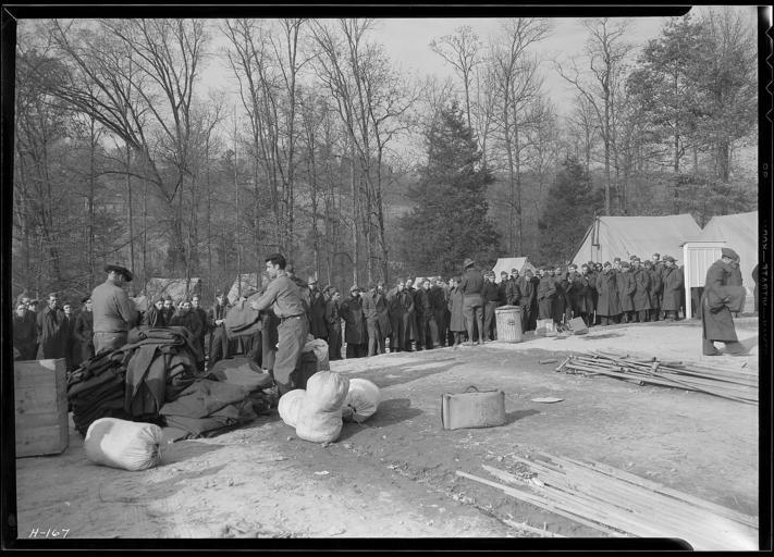 | Keywords: nara:arcid=532785 u.s. national archives usnationalarchives lewis hine lewishine blackandwhite monochrome photo border outdoor black and white Original Caption: Another view of the issuing of equipment to the new arrivals at CCC Camp, TVA #23, between Walker's Ford and Lone Mountain, Tennessee, in the Clinch River district, November 1933 U.S. National Archives’ Local Identifier: 142-H-167 Photographer: Hine, Lewis Subjects: New Deal, 1933-1939 Rural areas Tennessee (United States, North and Central America) state Water projects Persistent URL: research.archives.gov/description/532785 Repository: Still Picture Records Section, Special Media Archives Services Division (NWCS-S), National Archives at College Park, 8601 Adelphi Road, College Park, MD, 20740-6001. For information about ordering reproductions of photographs held by the Still Picture Unit, visit: www.archives.gov/research/order/still-pictures.html Reproductions may be ordered via an independent vendor. NARA maintains a list of vendors at www.archives.gov/research/order/vendors-photos-maps-dc.html Access Restrictions: Unrestricted Use Restrictions: Unrestricted Original Caption: Another view of the issuing of equipment to the new arrivals at CCC Camp, TVA #23, between Walker's Ford and Lone Mountain, Tennessee, in the Clinch River district, November 1933 U.S. National Archives’ Local Identifier: 142-H-167 Photographer: Hine, Lewis Subjects: New Deal, 1933-1939 Rural areas Tennessee (United States, North and Central America) state Water projects Persistent URL: research.archives.gov/description/532785 Repository: Still Picture Records Section, Special Media Archives Services Division (NWCS-S), National Archives at College Park, 8601 Adelphi Road, College Park, MD, 20740-6001. For information about ordering reproductions of photographs held by the Still Picture Unit, visit: www.archives.gov/research/order/still-pictures.html Reproductions may be ordered via an independent vendor. NARA maintains a list of vendors at www.archives.gov/research/order/vendors-photos-maps-dc.html Access Restrictions: Unrestricted Use Restrictions: Unrestricted |