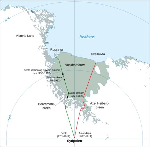 | Keywords: Antarctic expedition map (Amundsen - Scott)-no.svg Map showing the polar journeys of the Scott's Terra Nova expedition green and Amundsen's expedition red to reach the South Pole Kart som viser rutene til Amundsen rød og Scotts grønn sydpolsekspedisjoner Topografi http //gisdata usgs gov/website/antarctic_research_atlas/ Landsat Image Mosaic Of Antarctica LIMA Ruter Image TerraNova2 png 2010-02-01 Shakki Other versions/Antarctic expedition map Amundsen - Scott Terra Nova Expedition Amundsen Expedition |