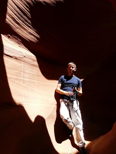 Keywords: antelope canyon page sand stone gorge canyon colorful color light shadow usa arizona lower antelope canyon slot canyon human person man
