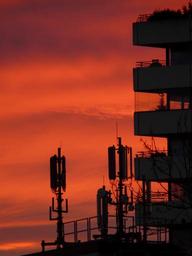 Keywords: antennas transmitter radio system afterglow sunset sky clouds fire glow burn home architecture technology