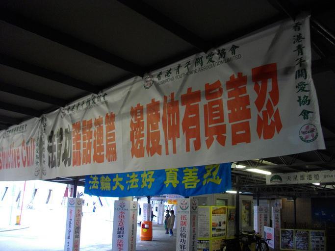| View Original: | Anti-Falun Gong and pro-Falun Gong banners at Tsim Sha Tsui Ferry Pier 02.JPG (2048x1536) | |||