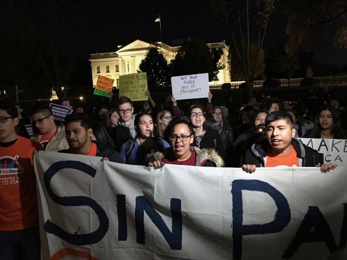 Keywords: Anti-Trump protest in Washington, D.C. 1.jpg en Anti-Trump protesters gathered near the White House in Washington D C Nov 10 2016 Jesusemen Oni/VOA 2016-11-10 http //www voanews com/a/anti-trump-protests-rage-on-across-us/3591819 html Jesusemen Oni/VOA other versions Custom license marker 2016 11 11 PD-USGov-VOA Demonstrations and protests against the presidency of Donald Trump in Washington D C November 2016 in Washington D C |