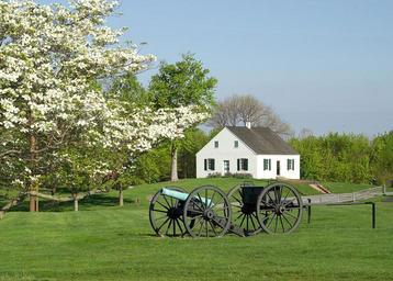 Keywords: antietam maryland cannon battlefield landscape plants sky clouds nature outside countryside summer spring historic historical landmark house trees field