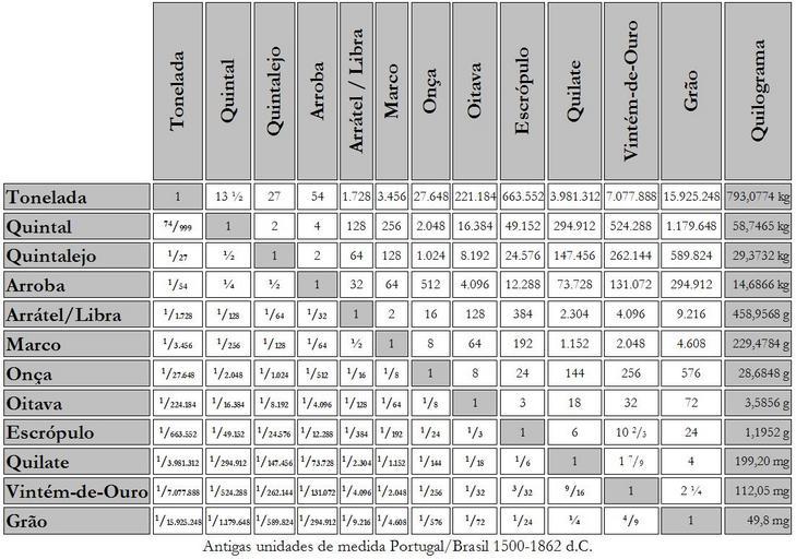 Keywords: Antigas Unidades.JPG en Ancient portuguese measures of mass +/- 1500 to 1862 d C pt Antigas unidades de peso portuguesas usadas em Portugal e no Brasil No Brasil até 1862 own Nerun 12/Outubro/2009 Tables information