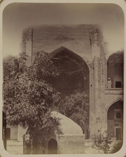 Keywords: Antiquities of Samarkand. Inner Courtyard of the Shir Dar Madrasah (Northern Side). Inscription to the Right of the Niche WDL3797.png Artwork ru Богаевский иколай Владими ович 1843 1912 гг fr Bogaevskii Nikolaï V 1843-1912 en Bogaevskii Nikolai V 1843-1912 zh 亚历山大·L· ,1840-1888 年 pt Bogaevskii Nikolai V 1843-1912 ar بوغافسكي، نيكولاي ف ، 1843-1912 es Bogaevskii Nikolai V 1843-1912 ru Сама кандские д евности Внут енний дво мед есе Ши -До севе ная сто она адпись с п авой сто оны ниши fr Antiquités de Samarcande Cour intérieure de la madrasa de Shir Dar côté nord Côté droit de la niche en Antiquities of Samarkand Inner Courtyard of the Shir Dar Madrasah Northern Side Inscription to the Right of the Niche zh 撒马尔罕古迹 尔·达伊斯兰教学校内部庭院(北侧) 壁龛右侧的铭文 pt Antiguidades de Samarcanda Pátio interno da madrassa Shir Dar lado norte Inscrição à direita do nicho ar آثار سمرقند الفناء الداخلي لمدرسة شير دار الجهة الشمالية نقوش إلى يمين المِشْكاة ru Эта фотог афия внут еннего дво а мед есе Ши -До в Сама канде Узбекистан соде жится в а хеологической части <em> Ту кестанского альбома </em> Шеститомное фотог афическое исследование было п оведено в 1871 1872 гг под уководством гене ала Константина П фон Кауфмана пе вого гене ал-губе нато а 1867 1882 гг Ту кестана как называли те ито ию Цент альной Азии п инадлежавшую Российской импе ии В альбоме уделяется особое внимание исламской а хитекту е Сама канда в том числе памятникам XIV и XV вв пе иода п авления Тиму а Таме лана и его п еемников В цент е Сама канда находится ансамбль Регистан объединяющий в себе т и основных об азца <em>madrasah</em> мед есе елигиозных школ Вто ое мед есе в ансамбле Ши -До было пост оено в 1619 1636 гг во в емена династии Ашта ханидов есмот я на значительные пов еждения нанесенные мед есе в течение многих веков оно остается одним из самых богато ук ашенных памятников в Цент альной Азии Фо ма этого мед есе является типичной для егиона п ямоугольный дво ок уженный двухэтажной а кадой кото ая соде жит комнаты для ученых Здесь изоб ажена а ка <em>iwan</em> сводчатый зал с одним отк ытым концом ок уженный с т ех сто он стенами находящаяся в цент е севе ной стены вместе с одним п яслом а кады сп ава Пове хности изначально были пок ыты многоцветной плиткой майоликой создающей геомет ические и ботанические узо ы Айван об амлен деко ативными полосами геомет ических мотивов а также ши окой полосой соде жащей надписи в укописном стиле сулюс <br>Исламская а хитекту а; ед есе; иши; Фотог афические исследования fr Cette photographie de l'intérieur de la cour de la madrasa de Shir Dar à Samarcande Ouzbékistan est extraite de l'ouvrage archéologique <em>Album du Turkestan</em> Cet inventaire photographique en six volumes fut réalisé entre 1871 et 1872 sous le patronage du général Konstantin P von Kaufman premier gouverneur général 1867-1882 du Turkestan nom donné aux territoires d'Asie centrale de l'Empire russe L'album consacre une attention particulière à l'architecture islamique de Samarcande avec notamment des monuments datant des XIV<sup>e</sup> et XV<sup>e</sup> siècles lors du règne de Tamerlan et de ses successeurs Situé au centre de Samarcande l'ensemble du Registan est composé de trois exemples majeurs de <em>madrasa</em> école religieuse La seconde madrasa de l'ensemble celle de Shir Dar fut construite entre 1619 et 1636 au cours de la dynastie astrakane Malgré les dommages considérables subis au cours des siècles elle demeure l'un des monuments les plus luxueusement décorés d'Asie centrale Typique de la région cette madrasa est formée d'une cour rectangulaire entourée d'une arcade à deux étages qui contient des salles réservées aux érudits L'arceau de l'<em>aivan</em> salle voûtée dotée de trois murs et d'un côté ouvert est visible ici au centre du mur nord avec une saillie de l'arcade à droite l'origine les surfaces étaient recouvertes de carreaux de majolique polychromes formant des motifs géométriques et à fleurs Des bandes décoratives de motifs géométriques à fleurs et une bande d'inscription plus large en style cursif thulutte encadrent l'aivan <br>Architecture islamique; Madrasas; Niches; Inventaires photographiques en This photograph of the interior courtyard of the Shir Dar Madrasah in Samarkand Uzbekistan is from the archeological part of <em>Turkestan Album</em> The six-volume photographic survey was produced in 1871-72 under the patronage of General Konstantin P von Kaufman the first governor-general 1867-82 of Turkestan as the Russian Empi