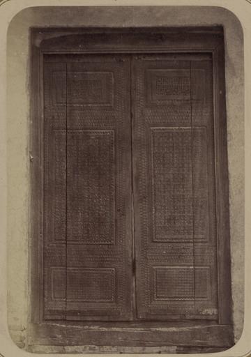 Keywords: Antiquities of Samarkand. Madrasah of Tillia Kari. Main Facade (Southern). Door to the Inner Courtyard WDL3839.png Artwork ru Богаевский иколай Владими ович 1843 1912 гг fr Bogaevskii Nikolaï V 1843-1912 en Bogaevskii Nikolai V 1843-1912 zh 亚历山大·L· ,1840-1888 年 pt Bogaevskii Nikolai V 1843-1912 ar بوغافسكي، نيكولاي ف ، 1843-1912 es Bogaevskii Nikolai V 1843-1912 ru Сама кандские д евности ед есе Тилля-Ка и Главный фасад южный Две ь во внут енний дво fr Antiquités de Samarcande Madrasa de Tillia Kari Façade principale sud Porte de la cour intérieure en Antiquities of Samarkand Madrasah of Tillia Kari Main Facade Southern Door to the Inner Courtyard zh 撒马尔罕古迹 提利娅·卡里伊斯兰教学校 主立 (南侧) 内部庭院的门 pt Antiguidades de Samarcanda Madrassa Tillia Kari Fachada principal sul Porta para o pátio interno ar آثار سمرقند مدرسة تِلْيَا كَرِى الواجهة الرئيسية الجنوبية باب يؤدي إلى الفناء الداخلي ru Эта фотог афия две и главного входа в мед есе Тилля-Ка и в Сама канде Узбекистан соде жится в а хеологической части <em> Ту кестанского альбома </em> Шеститомное фотог афическое исследование было подготовлено и издано в 1871 1872 гг под пат онажем гене ала Константина П фон Кауфмана пе вого гене ал-губе нато а 1867 1882 гг Ту кестана как называли в то в емя те ито ию Цент альной Азии п инадлежавшую Российской импе ии В альбоме уделяется особое внимание исламской а хитекту е Сама канда в том числе памятникам XIV и XV вв пе иода п авления Тиму а Таме лана и его п еемников В цент е Сама канда находится ансамбль Регистан объединяющий в себе т и основных об азца <em>madrasah</em> мед есе елигиозных школ Т етья часть Регистана мед есе Тилля-Ка и была пост оена в 1646 1660 гг на месте бывшего ка аван-са ая Вход в п ямоугольный дво об амлен ог омным <em>айваном</em> сводчатым залом с одним отк ытым концом ок уженным с т ех сто он стенами с каждой сто оны кото ого асположена двухэтажная сводчатая гале ея а фотог афии показана де евянная две ь в нише айвана Панели две и пок ыты замысловатой ельефной езьбой с геомет ическими и ботаническими мотивами Ве хние го изонтальные панели соде жат езные полосы с надписями в укописном стиле а обеих ство ках две и видны ве тикальные щели ство ки были ук еплены металлическими полосами све ху и снизу <br>А хитекту ные ук ашения и деко ативные элементы; Две и и две ные п оемы; Исламская а хитекту а; ед есе; Фотог афические исследования fr Cette photographie de la porte de l'entrée principale de la madrasa de Tillia Kari à Samarcande Ouzbékistan est extraite de l'ouvrage archéologique <em>Album du Turkestan</em> Cet inventaire photographique en six volumes fut réalisé entre 1871 et 1872 sous le patronage du général Konstantin P von Kaufman premier gouverneur général 1867-1882 du Turkestan nom donné aux territoires d'Asie centrale de l'Empire russe L'album consacre une attention particulière à l'architecture islamique de Samarcande avec notamment des monuments datant des XIV<sup>e</sup> et XV<sup>e</sup> siècles lors du règne de Tamerlan et de ses successeurs Situé au centre de Samarcande l'ensemble du Registan est composé de trois exemples majeurs de <em>madrasa</em> école religieuse Le troisième composant du Registan la madrasa de Tillia Kari fut construit entre 1646 et 1660 sur le site d'un ancien caravansérail L'entrée de la cour rectangulaire est abritée par un grand <em>aivan</em> salle voûtée dotée de trois murs et d'un côté ouvert encadré des deux côtés d'une arcade à deux étages Cette photographie présente la porte en bois située dans la niche de l'aivan Les panneaux de la porte sont recouverts de gravures en relief complexes formant des motifs géométriques et à fleurs La partie supérieure des panneaux horizontaux est décorée de bandes d'inscription en style cursif Présentant des fissures verticales le haut et le bas des deux battants de la porte ont été renforcés par des pièces métalliques <br>Décorations et ornements architecturaux; Portes et seuils; Architecture islamique; Madrasas; Inventaires photographiques en This photograph of the door of the main entrance to the Tillia Kari Madrasah in Samarkand Uzbekistan is from the archeological part of <em>Turkestan Album</em> The six-volume photographic survey was produced in 1871-72 under the patronage of General Konstantin P von Kaufman the first governor-general 1867-82 of Turkestan as the Russian Empire s Central Asian territories were called The album devotes special attention to Samarkand s Islamic architecture such as 14th- and 15th-century monuments from the reign of Timur Tamerlane and his s