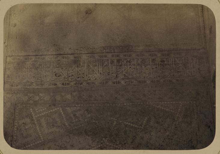 Keywords: Antiquities of Samarkand. Madrasah of Ulugh Beg. Main Facade (Eastern). End WDL3857.png Artwork ru Богаевский иколай Владими ович 1843 1912 гг fr Bogaevskii Nikolaï V 1843-1912 en Bogaevskii Nikolai V 1843-1912 zh 亚历山大·L· ,1840-1888 年 pt Bogaevskii Nikolai V 1843-1912 ar بوغافسكي، نيكولاي ف ، 1843-1912 es Bogaevskii Nikolai V 1843-1912 ru Сама кандские д евности ед есе Улугбека Главный фасад восточный Конец fr Antiquités de Samarcande Madrasa d'Ulugh Beg Façade principale est Fin en Antiquities of Samarkand Madrasah of Ulugh Beg Main Facade Eastern End zh 撒马尔罕古迹 鲁伯· 格伊斯兰教学校 主立 ( 侧) 结 部分 pt Antiguidades de Samarcanda Madrassa de Ulugh Beg Fachada principal lado leste Fim ar آثار سمرقند مدرسة أُلوك بيك الواجهة الرئيسية الشرقية النهاية ru Эта фотог афия ф агмента восточного фасада мед есе Улугбека в Сама канде Узбекистан соде жится в а хеологической части <em> Ту кестанского альбома </em> Шеститомное фотог афическое исследование было подготовлено и издано в 1871 1872 гг под пат онажем гене ала Константина П фон Кауфмана пе вого гене ал-губе нато а 1867 1882 гг Ту кестана как называли в то в емя те ито ию Цент альной Азии п инадлежавшую Российской импе ии В альбоме уделяется особое внимание исламской а хитекту е Сама канда в том числе памятникам XIV и XV вв пе иода п авления Тиму а Таме лана и его п еемников В цент е Сама канда находится ансамбль Регистан объединяющий в себе т и основных об азца <em>madrasah</em> мед есе елигиозных школ Самой ста ой сох анившейся частью площади Регистан является мед есе Улугбека ведущий цент исламского об азования пост оенный в 1417 1420 гг Улугбеком - ученым-п авителем и внуком Тиму а 1393 1449 гг а фотог афии виден ф агмент стены внут и ниши ог омной а ки <em>айвана</em> сводчатого зала с одним отк ытым концом ок уженного с т ех сто он стенами п и входе в мед есе есмот я на значительные пов еждения нанесенные фасаду на этом ф агменте видны богатые многоцветные ке амические ук ашения Особый инте ес п едставляет богато ук ашенная полоса с пе сидско-а абской надписью об амленная деко ативными полосами и асположенная внут и панелей пок ытых сложными геомет ическими и ботаническими мотивами Панели в свою оче едь окаймлены полосами из плитки Хотя снимку немного не хватает выде жки такие под обные фотог афии свидетельствуют о п иве женности тщательному изучению исламских памятников <br>А хитекту ные ук ашения и деко ативные элементы; адписи; Исламская а хитекту а; ед есе; Фотог афические исследования fr Cette photographie d'un détail de la façade est de la madrasa d'Ulugh Beg à Samarcande Ouzbékistan est extraite de l'ouvrage archéologique <em>Album du Turkestan</em> Cet inventaire photographique en six volumes fut réalisé entre 1871 et 1872 sous le patronage du général Konstantin P von Kaufman premier gouverneur général 1867-1882 du Turkestan nom donné aux territoires d'Asie centrale de l'Empire russe L'album consacre une attention particulière à l'architecture islamique de Samarcande avec notamment des monuments datant des XIV<sup>e</sup> et XV<sup>e</sup> siècles lors du règne de Tamerlan et de ses successeurs Situé au centre de Samarcande l'ensemble du Registan est composé de trois exemples majeurs de <em>madrasa</em> école religieuse Composant le plus ancien encore existant aujourd'hui sur la place du Registan la madrasa d'Ulugh Beg centre important de l'éducation islamique fut construite entre 1417 et 1420 par le roi-érudit et petit-fils de Tamerlan Ulugh Beg vers 1393-1449 Cette vue présente un détail du mur à l'intérieur de la niche du grand arceau de l'<em>aivan </em> salle voûtée dotée de trois murs et d'un côté ouvert à l'entrée de la madrasa Malgré les dommages considérables sur la façade ce segment arbore de riches ornements en céramique polychrome La bande d'inscription perso-arabe ornementée constitue un intérêt particulier Bordée de bandes décoratives elle est placée dans des panneaux de lambris contenant des motifs géométriques et à fleurs Les panneaux sont bordés de bandes de carreaux Bien que légèrement sous-exposées les photographies détaillées comme celle présentée ici révèlent le dévouement pour l'étude minutieuse des monuments islamiques <br>Décorations et ornements architecturaux; Inscriptions; Architecture islamique; Madrasas; Inventaires photographiques en This photograph of a detail of the east facade of the Ulugh Beg Madrasah in Samarkand U