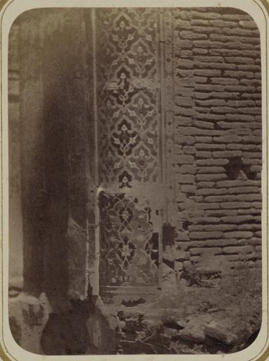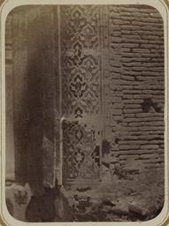 | Keywords: Antiquities of Samarkand. Mausoleum of the Emir Timur Kuragan (Gur-Emir). Part of a Corner Column of the Facade WDL3716.png Artwork ru Богаевский иколай Владими ович 1843 1912 гг fr Bogaevskii Nikolaï V 1843-1912 en Bogaevskii Nikolai V 1843-1912 zh 亚历山大·L· ,1840-1888 年 pt Bogaevskii Nikolai V 1843-1912 ar بوغافسكي، نيكولاي ف ، 1843-1912 es Bogaevskii Nikolai V 1843-1912 ru Сама кандские д евности авзолей эми а Тиму а Ку агана Гу -Эми Часть угловой колонны фасада fr Antiquités de Samarcande Mausolée de l'émir Timour Kuragan Gour Emir Partie d'une colonne d'angle de la façade en Antiquities of Samarkand Mausoleum of the Emir Timur Kuragan Gur-Emir Part of a Corner Column of the Facade zh 撒马尔罕古迹 埃米尔帖 儿·库拉甘的陵墓(古尔-埃米尔) 立 角落的柱子的 部分 pt Antiguidades de Samarcanda Mausoléu de Tamerlão Gur-Emir Parte de uma coluna de canto da fachada ar آثار سمرقند ضريح الأمير تيمور كوراغان گورِ أمير جزء من أحد أعمدة أركان الواجهة ru Эта фотог афия элемента фасада мавзолея Гу -Эми в Сама канде Узбекистан соде жится в а хеологической части <em> Ту кестанского альбома </em> Шеститомное фотог афическое исследование было п оведено в 1871 1872 гг под уководством гене ала Константина П фон Кауфмана пе вого гене ал-губе нато а 1867 1882 гг Ту кестана как называли те ито ию Цент альной Азии п инадлежавшую Российской импе ии В альбоме уделяется особое внимание исламскому а хитекту ному наследию Сама канда включая Гу -Эми на пе сидском языке означает г обница повелителя Гу -Эми известен в пе вую оче едь как место захо онения Тиму а Таме лана хотя Тиму начал его ст оительство еще в 1403 г в память своего любимого внука ухаммада Султана уме шего в воз асте 27 лет а момент сме ти Тиму а в 1405 г г обница еще не была заве шена После его похо он Гу -Эми стал мавзолеем Тиму идов Здесь показан сегмент многоцветной ке амической колонны асположенной на углу по всей видимости севе ного фасада есмот я на пов еждения пове хности стены на колонне видны изысканные цветочные а абески в основе кото ых лежат четы ехлистные омбы связанные между собой изящными завитками Каждый четы ехлистник имеет т и цветка кото ые начинаются в основе венка Слева неясно азличима покатая стена ниши <em>iwan </em> сводчатый зал с одним отк ытым концом ок уженный с т ех сто он стенами также пок ытая ке амикой <br>А хитекту ные ук ашения и деко ативные элементы; Исламская а хитекту а; Фотог афические исследования; огильные памятники; Тиму 1336-1405 гг ; Г обницы fr Cette photographie d'un détail de façade du mausolée de Gour Emir à Samarcande Ouzbékistan est extraite de l'ouvrage archéologique <em>Album du Turkestan</em> Cet inventaire photographique en six volumes fut réalisé entre 1871 et 1872 sous le patronage du général Konstantin P von Kaufman premier gouverneur général 1867-1882 du Turkestan nom donné aux territoires d'Asie centrale de l'Empire russe L'album consacre une attention particulière à l'héritage de l'architecture islamique de Samarcande notamment Gour Emir « tombe du souverain » en persan Bien qu'il soit principalement connu comme le lieu de sépulture de Tamerlan Gour Emir fut commencé sous Tamerlan en 1403 pour commémorer la mort de son petit-fils bien-aimé le sultan Mahomet à l'âge de 27 ans Le sanctuaire n'était toujours pas achevé lorsque Tamerlan décéda en 1405 Avec son enterrement Gour Emir devint le mausolée des Timourides Cette photographie présente un segment d'une colonne de céramique polychrome fixée à un angle vraisemblablement de la façade nord Malgré les dommages sur la surface du mur la colonne présente une arabesque à fleurs raffinée formant un motif de losanges quadrilobés reliés par des vrilles sophistiquées Chaque quadrilobe contient trois fleurs émergeant d'une base de couronne gauche à peine visible le mur en retrait de la niche de l'<em>aivan </em> salle voûtée dotée de trois murs et d'un côté ouvert est également recouvert de céramique <br>Décorations et ornements architecturaux; Architecture islamique; Inventaires photographiques; Monuments funéraires; Tamerlan 1336-1405; Tombes en This photograph of a facade detail at the Gur-Emir mausoleum in Samarkand Uzbekistan is from the archeological part of <em>Turkestan Album</em> The six-volume photographic survey was produced in 1871-72 under the patronage of General Konstantin P von Kaufman the first governor-general 1867-82 of Turkestan as the Russian Empire s Central Asian territories were called The album devotes special attention to Samarkand s Islamic architectural heritage including Gur-Emir P