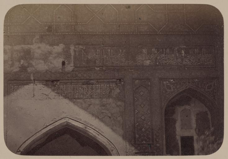 Keywords: Antiquities of Samarkand. Shir Dar Madrasah. Inscriptions in the Main Niche of the Facade WDL3831.png Artwork ru Богаевский иколай Владими ович 1843 1912 гг fr Bogaevskii Nikolaï V 1843-1912 en Bogaevskii Nikolai V 1843-1912 zh 亚历山大·L· ,1840-1888 年 pt Bogaevskii Nikolai V 1843-1912 ar بوغافسكي، نيكولاي ف ، 1843-1912 es Bogaevskii Nikolai V 1843-1912 ru Сама кандские д евности ед есе Ши -До адписи в главной нише фасада fr Antiquités de Samarcande Madrasa de Shir Dar Inscriptions dans la niche principale de la façade en Antiquities of Samarkand Shir Dar Madrasah Inscriptions in the Main Niche of the Facade zh 撒马尔罕古迹 尔·达伊斯兰教学校 立 主壁龛中的铭文 pt Antiguidades de Samarcanda Madrassa Shir Dar Inscrições no nicho principal da fachada ar آثار سمرقند مدرسة شير دار نقوش على المِشْكاة الرئيسة للواجهة ru Эта фотог афия мед есе Ши -До в Сама канде Узбекистан соде жится в а хеологической части <em> Ту кестанского альбома </em> Шеститомное фотог афическое исследование было подготовлено и издано в 1871 1872 гг под пат онажем гене ала Константина П фон Кауфмана пе вого гене ал-губе нато а 1867 1882 гг Ту кестана как называли в то в емя те ито ию Цент альной Азии п инадлежавшую Российской импе ии В альбоме уделяется особое внимание исламской а хитекту е Сама канда в том числе памятникам XIV и XV вв пе иода п авления Тиму а Таме лана и его п еемников В цент е Сама канда находится ансамбль Регистан объединяющий в себе т и основных об азца <em>madrasah</em> мед есе елигиозных школ Вто ое мед есе в ансамбле Ши -До было пост оено в 1619 1636 гг во в емена династии Ашта ханидов Здесь показаны богатые ке амические ук ашения стены внут и <em>айвана</em> сводчатого зала с одним отк ытым концом ок уженного с т ех сто он стенами Внизу видна ст ельчатая а ка над главным входом над кото ой находится го изонтальная полоса с надписью в укописном стиле сулюс П ост анство с каждой сто оны ук ашено замысловатыми геомет ическими и ботаническими фигу ами Сп ава видна ст ельчатая ниша с окном на вто ом этаже Как и остальной фасад эта ниша пок ыта искусной ке амикой ад а ками асположена еще одна го изонтальная полоса с укописным письмом об амленная деко ативными полосами В самом ве ху видна пове хность с к упными пе есекающимися геомет ическими узо ами <br>А хитекту ные ук ашения и деко ативные элементы; адписи; Исламская а хитекту а; ед есе; Фотог афические исследования fr Cette photographie de la madrasa de Shir Dar à Samarcande Ouzbékistan est extraite de l'ouvrage archéologique <em>Album du Turkestan</em> Cet inventaire photographique en six volumes fut réalisé entre 1871 et 1872 sous le patronage du général Konstantin P von Kaufman premier gouverneur général 1867-1882 du Turkestan nom donné aux territoires d'Asie centrale de l'Empire russe L'album consacre une attention particulière à l'architecture islamique de Samarcande avec notamment des monuments datant des XIV<sup>e</sup> et XV<sup>e</sup> siècles lors du règne de Tamerlan et de ses successeurs Situé au centre de Samarcande l'ensemble du Registan est composé de trois exemples majeurs de <em>madrasa</em> école religieuse La madrasa de Shir Dar seconde de l'ensemble fut construite entre 1619 et 1636 au cours de la dynastie astrakane Cette vue présente le riche ornement en céramique du mur à l'intérieur de l'<em>aivan</em> salle voûtée dotée de trois murs et d'un côté ouvert Dans la partie inférieure l'arceau pointu de l'entrée principale est visible avec au-dessus une bande d'inscription horizontale en style cursif thoulouth De chaque côté les espaces sont décorés de figures géométriques et à fleurs sophistiquées Sur la droite une niche pointue laisse apparaître une fenêtre au second étage Comme le reste de la façade la surface de cette niche est recouverte de céramiques complexes Au-dessus des arceaux une autre bande horizontale d'écriture cursive est bordée d'un cadre ornemental La surface de la partie supérieure de la vue est composée de grands motifs géométriques s'entrecroisant <br>Décorations et ornements architecturaux; Inscriptions; Architecture islamique; Madrasas; Inventaires photographiques en This photograph of the Shir Dar Madrasah in Samarkand Uzbekistan is from the archeological part of <em>Turkestan Album</em> The six-volume photographic survey was produced in 1871-72 under the patronage of General Konstantin P von Kaufman the first governor-general 1867-82 of Turkestan as the Russian Empire s Central Asian territories were called The album devotes special attention to Samarkand s Islamic archi
