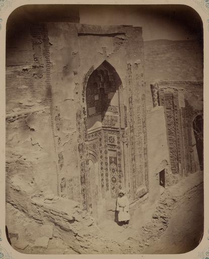 Keywords: Antiquities of Samarkand. Tomb of the Saint Kusam-ibn-Abbas (Shah-i Zindah) and Adjacent Mausoleums. Mausoleum of the Daughter of Emir Khodzha Toglu Tekin. View of the Facade WDL3638.png Artwork ru Богаевский иколай Владими ович 1843 1912 гг fr Bogaevskii Nikolaï V 1843-1912 en Bogaevskii Nikolai V 1843-1912 zh 亚历山大·L· ,1840-1888 年 pt Bogaevskii Nikolai V 1843-1912 ar بوغافسكي، نيكولاي ف ، 1843-1912 es Bogaevskii Nikolai V 1843-1912 ru Сама кандские д евности Г обница святого Куссама ибн Абасса Шах-Зиндэ и мавзолеи п и ней авзолей доче и эми а Ходжи Туглу-Текин Вид фасада fr Antiquités de Samarcande Sépulcre de Kusam-ibn-Abbas Shah-i Zindah et mausolées adjacents Mausolée de la fille de l'émir Khodzha Toglu Tekin Vue de la façade en Antiquities of Samarkand Tomb of the Saint Kusam-ibn-Abbas Shah-i Zindah and Adjacent Mausoleums Mausoleum of the Daughter of Emir Khodzha Toglu Tekin View of the Facade zh 撒马尔罕古迹 库萨姆-伊 -阿巴斯之墓(夏伊辛达)及其邻近陵墓 埃米尔 贾·托格鲁·特金女儿的陵墓 立 景象 pt Antiguidades de Samarcanda Túmulo do Santo Kusam-ibn-Abbas Shakhi Zinda e mausoléus adjacentes Mausoléu da filha do Emir Khodzha Toglu Tekin Imagem da fachada ar آثار سمرقند ضَرِيح الوَلِيّ قثم بن عباس شاه زنده والأضرحة المجاورة ضريح ابنة الأمير خواجه توغلو تِكين صورة للواجهة ru Эта фотог афия мавзолея Туман-Ака в нек ополе Шах-Зиндэ в Сама канде соде жится в а хеологической части <em> Ту кестанского альбома </em> Шеститомное фотог афическое исследование было подготовлено и издано в 1871 1872 гг под пат онажем гене ала Константина П  фон Кауфмана пе вого гене ал-губе нато а 1867 1882 гг Ту кестана как называли в то в емя те ито ию Цент альной Азии п инадлежавшую Российской импе ии В альбоме уделяется особое внимание исламской а хитекту е Сама канда в том числе памятникам XIV и XV вв пе иода п авления Таме лана и его п еемников Особенно следует отметить ансамбль Шах-Зиндэ на пе сидском языке означает живой ца ь кото ый почитается как мемо иал Куссама ибн Абасса двою одного б ата п о ока ухаммада авзолей и мечеть Туман-Ака пост оенные в 1405 г как мемо иал в честь младшей жены Таме лана асположены слева от <em>ча така</em> в севе ной г уппе г обниц а фотог афии мавзолея снятой над сломанным па апетом ча така также виден угол фасада соседней мечети с левого к ая и мавзолей Ходжа Ахмада сп ава Фасад мавзолея подче кнут высокой а кой <em>пештаком</em> об амляющей нишу с по талом Его мозаичные панели с цветочными геомет ическими и буквенными узо ами п едставляют собой ве шину масте ства в использовании а хитекту ной ке амики в данном егионе А ка венчается сводом с ук ашениями в виде сотовой ст укту ы <em>mocárabe</em> <br>А хеологические объекты; Исламская а хитекту а; Фотог афические исследования; огильные памятники; Шах-Зиндэ; Г обницы fr Cette photographie du mausolée de Tuman-Aka situé dans la nécropole de Shah-i Zindah à Samarcande est extraite de l'ouvrage archéologique <em>Album du Turkestan</em> Cet inventaire photographique en six volumes fut réalisé entre 1871 et 1872 sous le patronage du général Konstantin P von Kaufman premier gouverneur général 1867-1882 du Turkestan nom donné aux territoires d'Asie centrale de l'Empire russe L'album consacre une attention particulière à l'architecture islamique de Samarcande avec notamment des monuments datant des XIV<sup>e</sup> et XV<sup>e</sup> siècles lors du règne de Tamerlan et de ses successeurs L'ensemble de Shah-i Zindah « roi vivant » en persan est un mémorial dédié à la vénération de Kusam-ibn-Abbas cousin du prophète Mahomet Bâtis en 1405 comme mémorial dédié à la plus jeune épouse de Tamerlan le mausolée et la mosquée de Tuman-Aka se trouvent à gauche du <em>chartak</em> au nord des sanctuaires Cette vue du mausolée prise par-dessus le parapet endommagé du chortak inclut également un angle de la façade de la mosquée adjacente complètement à gauche ainsi que le mausolée de Khodzha Akhmad sur la droite La façade du mausolée est définie par un arceau élevé <em>peshtak</em> qui encadre la niche contenant le portail Ses panneaux de mosaïque décorés de motifs à fleurs géométriques et épigraphiques représentent l'apogée de la céramique architecturale de la région L'arceau est surplombé d'une voûte décorative en « nid d'abeilles » <em>mocarabe</em> <br>Sites archéologiques; Architecture islamique; Inventaires photographiques; Monuments funéraires; Shāh-i Zindah; Tombes en This photograph of the Tuman-Aka mausoleum within the
