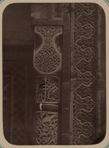 Keywords: Antiquities of Samarkand. Tomb of the Saint Kusam-ibn-Abbas (Shah-i Zindah) and Adjacent Mausoleums. Mausoleum of Tamerlane's Daughter, Toglu Tekin. Column Capital WDL3640.png Artwork ru Богаевский иколай Владими ович 1843 1912 гг fr Bogaevskii Nikolaï V 1843-1912 en Bogaevskii Nikolai V 1843-1912 zh 亚历山大·L· ,1840-1888 年 pt Bogaevskii Nikolai V 1843-1912 ar بوغافسكي، نيكولاي ف ، 1843-1912 es Bogaevskii Nikolai V 1843-1912 ru Сама кандские д евности Г обница святого Куссама ибн Абасса Шах-Зиндэ и мавзолеи п и ней авзолей доче и Таме лана Туглу-Текин Капитель колонны fr Antiquités de Samarcande Sépulcre de Kusam-ibn-Abbas Shah-i Zindah et mausolées adjacents Mausolée de la fille de Tamerlan Toglu Tekin Chapiteau de colonne en Antiquities of Samarkand Tomb of the Saint Kusam-ibn-Abbas Shah-i Zindah and Adjacent Mausoleums Mausoleum of Tamerlane's Daughter Toglu Tekin Column Capital zh 撒马尔罕古迹 库萨姆-伊 -阿巴斯之墓(夏伊辛达)及其邻近陵墓 帖 儿女儿托格鲁·特金的陵墓 柱头 pt Antiguidades de Samarcanda Túmulo do Santo Kusam-ibn-Abbas Shakhi Zinda e mausoléus adjacentes Mausoléu da filha de Tamerlão Toglu Tekin Capitel da coluna ar آثار سمرقند ضَرِيح الوَلِيّ قثم بن عباس شاه زنده والأضرحة المجاورة ضريح ابنة تَيْمورلِنك، توغلو-تكين تاج العمود ru Эта фотог афия капители колонны на фасаде мавзолея Туглу-Текин эми а Хуссейна в нек ополе Шах-Зиндэ в Сама канде соде жится в а хеологической части <em> Ту кестанского альбома </em> Шеститомное фотог афическое исследование было подготовлено и издано в 1871 1872 гг под пат онажем гене ала Константина П  фон Кауфмана пе вого гене ал-губе нато а 1867 1882 гг Ту кестана как называли в то в емя те ито ию Цент альной Азии п инадлежавшую Российской импе ии Основными составителями фотомате иалов стали п икоманди ованный к а мии востоковед Александ Людвигович Кун и военный инжене иколай Владими ович Богаевский Они уделяли особое внимание исламской а хитекту е Сама канда в том числе памятникам XIV и XV вв пе иода п авления Тиму а Таме лана и его п еемников Ансамбль Шах-Зиндэ на пе сидском языке означает живой ца ь почитается как мемо иал Куссама ибн Абасса двою одного б ата п о ока ухаммада В 1386 г был пост оен мавзолей для Туглу-Текин доче и эми а Ходжи и мате и эми а Хуссейна одного из вельмож Тиму а есмот я на полученные с течением в емени пов еждения фасад и большая часть деко ативных элементов из многоцветной плитки сох анились а фотог афии видна капитель езной колонны из глазу ованной те акоты п имыкающей к п авому углу а ки фасада или <em>пештаку</em> Сложный исунок сочетает в себе волнистые цветочные мотивы и пе еплетающиеся фигу ы Сп ава находится ве тикальная полоса из ке амических плиток с узо ом в виде т илистника <br>А хеологические объекты; А хитекту ные ук ашения и деко ативные элементы; Исламская а хитекту а; Фотог афические исследования; огильные памятники; Шах-Зиндэ; Г обницы fr Cette photographie d'un chapiteau de colonne sur la façade du mausolée de Toglu Tekin émir Hussein situé dans la nécropole de Shah-i Zindah à Samarcande est extraite de l'ouvrage archéologique <em>Album du Turkestan</em> Cet inventaire photographique en six volumes fut réalisé entre 1871 et 1872 sous le patronage du général Konstantin P von Kaufman premier gouverneur général 1867-1882 du Turkestan nom donné aux territoires d'Asie centrale de l'Empire russe Les documents visuels furent essentiellement compilés par Aleksandr L  Kun orientaliste rattaché à l'armée et Nikolai V  Bogaevskii ingénieur militaire Ces derniers consacrèrent une attention particulière à l'architecture islamique de Samarcande avec notamment des monuments datant des XIV<sup>e</sup> et XV<sup>e</sup> siècles lors du règne de Tamerlan et de ses successeurs L'ensemble de Shah-i Zindah « roi vivant » en persan est un mémorial dédié à la vénération de Kusam-ibn-Abbas cousin du prophète Mahomet En 1386 un mausolée fut bâti pour Toglu Tekin fille de l'émir Khodzha et mère de l'émir Hussein un des notables de Tamerlan Malgré les pertes subies au fil des siècles la façade et la plupart de ses carreaux ornementaux polychromes existent encore aujourd'hui Cette vue présente le chapiteau d'une colonne en terre cuite sculptée et vernissée fixée à l'angle droit de l'arceau de façade ou <em>peshtak</em> Les ornements sophistiqués mêlent les motifs à fleurs sinueux avec les entrel