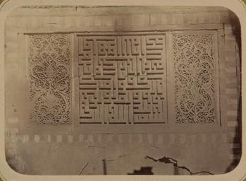 | Keywords: Antiquities of Samarkand. Tomb of the Saint Kusam-ibn-Abbas (Shah-i Zindah) and Adjacent Mausoleums. Mausoleum of Sha Arap. Section of Detail on the Side of the Front Niche WDL3667.png Artwork ru Богаевский иколай Владими ович 1843 1912 гг fr Bogaevskii Nikolaï V 1843-1912 en Bogaevskii Nikolai V 1843-1912 zh 亚历山大·L· ,1840-1888 年 pt Bogaevskii Nikolai V 1843-1912 ar بوغافسكي، نيكولاي ف ، 1843-1912 es Bogaevskii Nikolai V 1843-1912 ru Сама кандские д евности Г обница святого Куссама ибн Абасса Шах-Зиндэ и мавзолеи п и ней авзолей Ша-А ап Часть отделки со сто оны ниши фасада fr Antiquités de Samarcande Sépulcre de Kusam-ibn-Abbas Shah-i Zindah et mausolées adjacents Mausolée de Sha Arap Section d'un détail sur le côté de la niche de la façade en Antiquities of Samarkand Tomb of the Saint Kusam-ibn-Abbas Shah-i Zindah and Adjacent Mausoleums Mausoleum of Sha Arap Section of Detail on the Side of the Front Niche zh 撒马尔罕古迹 库萨姆-伊 -阿巴斯之墓(夏伊辛达)及其邻近陵墓 沙·阿拉普的陵墓 正 壁龛侧 的部分细节 pt Antiguidades de Samarcanda Túmulo do Santo Kusam-ibn-Abbas Shah-i Zindah e mausoléus adjacentes Mausoléu de Sha Arap Área de detalhes na lateral do nicho frontal ar آثار سمرقند ضَرِيح الوَلِيّ قثم بن عباس شاه زنده والأضرحة المجاورة ضريح شاء آراب جزء من تفاصيل بجانب المشكاة الأمامية ru Эта фотог афия деко ативной панели неизвестного мавзолея асположенного в севе ной г уппе г обниц нек ополя Шах-Зиндэ Сама канд Узбекистан соде жится в а хеологической части <em> Ту кестанского альбома </em> Шеститомное фотог афическое исследование было подготовлено и издано в 1871 1872 гг под пат онажем гене ала Константина П фон Кауфмана пе вого гене ал-губе нато а 1867 1882 гг Ту кестана как называли в то в емя те ито ию Цент альной Азии п инадлежавшую Российской импе ии В альбоме уделяется особое внимание исламской а хитекту е Сама канда в том числе памятникам XIV и XV вв пе иода п авления Тиму а Таме лана и его п еемников Особенно следует отметить Шах-Зиндэ на пе сидском языке означает живой ца ь кото ый пост оен на возвышенности бывшей местом д евнего поселения известного как Аф асиаб Шах-Зиндэ почитается как мемо иал Куссама ибн Абасса двою одного б ата п о ока ухаммада Хотя заказчик пост ойки этого мавзолея окончательно не оп еделен дата его ст оительства известна 1360 1361 гг есмот я на значительные пов еждения фасад мавзолея выделяется азнооб азием я ких многоцветных ке амических ук ашений с цветочными и геомет ическими узо ами и надписями Эта езная те акотовая панель асположена над входом внут и а ки фасада или <em>пештака</em> В цент е панели находится сложный узо из куфических букв а по бокам от него асположены удивительные дополнительные панели состоящие из цветочных мотивов и завитков <br>А хеологические объекты; А хитекту ные ук ашения и деко ативные элементы; Исламская а хитекту а; Фотог афические исследования; огильные памятники; Шах-Зиндэ; Г обницы fr Cette photographie d'un panneau décoratif d'un mausolée non identifié situé au nord de l'ensemble des sanctuaires de la nécropole de Shah-i Zindah à Samarcande Ouzbékistan est extraite de l'ouvrage archéologique <em>Album du Turkestan</em> Cet inventaire photographique en six volumes fut réalisé entre 1871 et 1872 sous le patronage du général Konstantin P von Kaufman premier gouverneur général 1867-1882 du Turkestan nom donné aux territoires d'Asie centrale de l'Empire russe L'album consacre une attention particulière à l'architecture islamique de Samarcande avec notamment des monuments datant des XIV<sup>e</sup> et XV<sup>e</sup> siècles lors du règne de Tamerlan et de ses successeurs Il convient de souligner que l'ensemble de Shah-i Zindah « roi vivant » en persan fut construit sur le site élevé d'une ancienne colonie connue sous le nom d'Afrosiabe et qu'il était dédié à la vénération de Kusam-ibn-Abbas cousin du prophète Mahomet Bien que le commanditaire du mausolée n'ait pas été identifié de façon concluante on a pu déterminer que sa construction date d'entre 1360 et 1361 Malgré les dommages considérables la façade se distingue par des ornements en céramique polychrome exceptionnels composés de motifs à fleurs géométriques et épigraphiques Ce panneau en terre cuite sculptée appartient à la partie supérieure de l'entrée située dans l'arceau de façade ou <em>peshtak</em> Au centre sa décoration sophistiquée inclut