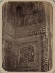 Keywords: Antiquities of Samarkand. Tomb of Saint Kusam-ibn-Abbas (Shah-i Zindah) and Adjacent Mausoleums. Mausoleum of Emir Kutuluk Turdi Bek Aka. Detail of Niche Panel on the External Arch (Above) WDL3617.png Artwork ru Богаевский иколай Владими ович 1843 1912 гг fr Bogaevskii Nikolaï V 1843-1912 en Bogaevskii Nikolai V 1843-1912 zh 亚历山大·L· ,1840-1888 年 pt Bogaevskii Nikolai V 1843-1912 ar بوغافسكي، نيكولاي ف ، 1843-1912 es Bogaevskii Nikolai V 1843-1912 ru Сама кандские д евности Г обница святого Куссама ибн Абасса Шах-Зиндэ и мавзолеи п и ней авзолей эми а Кутулука Ту ди Бек-Ака Деталь панели ниши во внешней а ке вве ху fr Antiquités de Samarcande Sépulcre de Kusam-ibn-Abbas Shah-i Zindah et mausolées adjacents Mausolée de l'émir Kutuluk Turdi Bek Aka Détail du panneau de la niche sur l'arceau extérieur partie supérieure en Antiquities of Samarkand Tomb of Saint Kusam-ibn-Abbas Shah-i Zindah and Adjacent Mausoleums Mausoleum of Emir Kutuluk Turdi Bek Aka Detail of Niche Panel on the External Arch Above zh 撒马尔罕古迹 库萨姆-伊 -阿巴斯之墓(夏伊辛达)及其邻近陵墓 埃米尔库图卢克·吐尔迪· 克·阿卡陵墓 外部拱门上的壁龛嵌 特写(上方) pt Antiguidades de Samarcanda Túmulo do Santo Kusam-ibn-Abbas Shakhi Zinda e mausoléus adjacentes Mausoléu do Emir Kutuluk Turdi Bek Aka Detalhe do painel do nicho no arco externo acima ar آثار سمرقند ضَرِيح الوَلِيّ قثم بن عباس شاه زنده والأضرحة المجاورة ضريح الأمير كُتُلغ تُرْدِى بَكْ-أغا تفاصيل إحدى لوحات مشكاة القوس الخارجي بالأعلى ru Эта фотог афия мавзолея Шади- ульк в нек ополе Куссама ибн Абасса в Сама канде соде жится в а хеологической части <em> Ту кестанского альбома </em> Шеститомное фотог афическое исследование было подготовлено и издано в 1871 1872 гг под пат онажем гене ала Константина П фон Кауфмана пе вого гене ал-губе нато а 1867 1882 гг Ту кестана как называли в то в емя те ито ию Цент альной Азии п инадлежавшую Российской импе ии Основными составителями фотомате иалов стали п икоманди ованный к а мии востоковед Александ Людвигович Кун и военный инжене иколай Владими ович Богаевский Они уделяли особое внимание исламской а хитекту е Сама канда в том числе памятникам XIV и XV вв пе иода п авления Таме лана и его п еемников Шах-Зиндэ на пе сидском языке означает живой ца ь пост оен на месте д евнего поселения известного как Аф асиаб Комплекс почитается как мемо иал Куссама ибн Абасса двою одного б ата п о ока ухаммада авзолей Шади- ульк-Ака был пост оен в 1372 г для пог ебения Улджай Шади- ульк доче и ста шей сест ы Таме лана Кутлуг-Ту кан-Ака а снимке виден ф агмент а очной ниши главного фасада с ке амическими ук ашениями включающими многоцветную плитку майолику фаянсовую мозаику узо чатую а абскую надпись в укописном стиле сулюс езные те акотовые колонны и элемент в виде сотовой ст укту ы <em>mocárabe</em> по ве ху ниши Основными цветами являются темно-голубой и би юзовый <br>А хитекту ные ук ашения и деко ативные элементы; Исламская а хитекту а; Фотог афические исследования; огильные памятники; Шах-Зиндэ; Г обницы fr Cette photographie du mausolée de Shadi Mulk de la nécropole de Shah-i Zindah à Samarcande est extraite de l'ouvrage archéologique <em>Album du Turkestan</em> Cet inventaire photographique en six volumes fut réalisé entre 1871 et 1872 sous le patronage du général Konstantin P von Kaufman premier gouverneur général 1867-1882 du Turkestan nom donné aux territoires d'Asie centrale de l'Empire russe Les documents visuels furent essentiellement compilés par Aleksandr L  Kun orientaliste rattaché à l'armée et Nikolai V  Bogaevskii ingénieur militaire Ces derniers consacrèrent une attention particulière à l'architecture islamique de Samarcande avec notamment des monuments datant des XIV<sup>e</sup> et XV<sup>e</sup> siècles lors du règne de Tamerlan et de ses successeurs L'ensemble de Shah-i Zindah « roi vivant » en persan fut construit sur le site d'une ancienne colonie connue sous le nom d'Afrosiabe Il était dédié à la vénération de Kusam-ibn-Abbas cousin du prophète Mahomet Le mausolée de Shadi Mulk Aka fut bâti en 1372 pour l'enterrement d'Uldjai Shadi-Mulk fille de la sœur aînée de Tamerlan Kutlug-Turkan-Aka Cette vue présente un fragment de la niche voûtée de la façade principale dont les ornements en céramique incluent des carreaux de majolique polychromes des mosaïques de faïence une écriture arabe en style cursif thoulouth a
