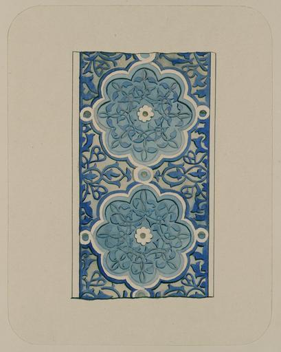 | Keywords: Antiquities of Samarkand. Tomb of Saint Kusam-ibn-Abbas (Shah-i Zindah) and Adjacent Mausoleums. Tiles on the Exterior of the Mausoleum WDL3901.png Artwork ru Шостак Л А fr Shostak L A en Shostak L A zh L A ·斯塔克 pt Shostak L A ar شوستاك، ل أ es Shostak L A ru Сама кандские д евности Г обница святого Куссама ибн Абасса Шах-Зиндэ и мавзолеи п и ней Плитка на фасаде мавзолея fr Antiquités de Samarcande Sépulcre de Kusam-ibn-Abbas Shah-i Zindah et mausolées adjacents Carreaux de l extérieur du mausolée en Antiquities of Samarkand Tomb of Saint Kusam-ibn-Abbas Shah-i Zindah and Adjacent Mausoleums Tiles on the Exterior of the Mausoleum zh 撒马尔罕古迹 库萨姆-伊 -阿巴斯之墓(夏伊辛达)及其邻近陵墓 陵墓外部的瓷砖 pt Antiguidades de Samarcanda Túmulo do Santo Kusam-ibn-Abbas Shah-i Zindah e mausoléus adjacentes Azulejos no exterior do mausoléu ar آثار سمرقند ضَرِيح الوَلِيّ قثم بن عباس شاه زنده والأضرحة المجاورة بلاط السطح الخارجي للضريح ru Эта аква ель с изоб ажением о намента на фасаде мавзолея Эми -Заде асположенного на те ито ии нек ополя Шах-Зиндэ в Сама канде соде жится в а хеологической части <em> Ту кестанского альбома </em> Шеститомное фотог афическое исследование было подготовлено и издано в 1871 1872 гг под пат онажем гене ала Константина П фон Кауфмана пе вого гене ал-губе нато а 1867 1882 гг Ту кестана как называли в то в емя те ито ию Цент альной Азии п инадлежавшую Российской импе ии Основными составителями фотомате иалов стали п икоманди ованный к а мии востоковед Александ Людвигович Кун и военный инжене иколай Владими ович Богаевский Они уделяли особое внимание исламской а хитекту е Сама канда в том числе памятникам XIV и XV вв пе иода п авления Таме лана и его п еемников Шах-Зиндэ на пе сидском языке означает живой ца ь пост оен на месте д евнего поселения известного как Аф асиаб Комплекс почитается как мемо иал Куссама ибн Абасса двою одного б ата п о ока ухаммада авзолей Эми -Заде был пост оен в 1386 г одним из п иближенных Таме лана есмот я на пов еждения нанесенные многоцветным ук ашениям фасад остается замечательным п име ом достижений деко ативного искусства С едней Азии а исунке показаны ке амические озетки об азующие ве тикальные деко ативные полосы по обеим сто онам а ки фасадa Подобные аква ельные эскизы соде жат инфо мацию о цвете кото ую невозможно было пе едать п и помощи фотог афий того в емени Вместе с тем данный исунок не в полной ме е от ажает сложность о игинального узо а <br>А хитекту ные ук ашения и деко ативные элементы; Исламское искусство; огильные памятники; Шах-Зиндэ; озаика; Г обницы; Аква ельные исунки fr Cette aquarelle des ornements de la façade du mausolée de l'émir Zade situé dans la nécropole de Shah-i Zindah à Samarcande est extraite de l'ouvrage archéologique <em>Album du Turkestan</em> Cet inventaire photographique en six volumes fut réalisé entre 1871 et 1872 sous le patronage du général Konstantin P von Kaufman premier gouverneur général 1867-1882 du Turkestan nom donné aux territoires d'Asie centrale de l'Empire russe Les documents visuels furent essentiellement compilés par Aleksandr L Kun orientaliste rattaché à l'armée et Nikolai V Bogaevskii ingénieur militaire Ces derniers consacrèrent une attention particulière à l'architecture islamique de Samarcande avec notamment des monuments datant des XIV<sup>e</sup> et XV<sup>e</sup> siècles lors du règne de Tamerlan et de ses successeurs Construit sur le site d'une ancienne colonie connue sous le nom d'Afrosiabe l'ensemble de Shah-i Zindah « roi vivant » en persan est un mémorial dédié à la vénération de Kusam-ibn-Abbas cousin du prophète Mahomet Le mausolée de l'émir Zade fut bâti en 1386 par un membre de la cour de Tamerlan Malgré la disparition d'une partie des ornements polychromes la façade reste un exemple majeur des réalisations de l'art décoratif d'Asie centrale Les dessins présentent des rosettes céramiques qui forment des bandes décoratives verticales sur chaque côté de l arceau de façade De telles esquisses à l'aquarelle transmettent des informations relatives aux couleurs qui ne sont pas disponibles sur la photographie de l'époque Pourtant l esquisse ne restitue pas pleinement la complexité du dessin original <br>Décorations et ornements architecturaux; Art islamique; Monuments funéraires; Shāh-i Zindah; Carreaux; Tombes; Aquarelles en This watercolor of facade ornaments on the Emir-Zade mausoleum at the Shah-i Zind