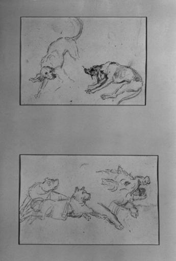 | Keywords: Antoine-Louis Barye - Mastiffs and the Head of a Wild Boar - Walters 372033 - Front Group.jpg With more sketches of wild boars on the reverse century 19 pencil paper cm 10 14 5 accession number 37 2033 38090 Vildieu-Barye Collection Fabius Frères Paris date and mode of acquisition unknown Walters Art Museum 1949 by purchase Museum purchase 1949 place of origin Paris France Walters Art Museum license 2D Drawings and paintings by Antoine-Louis Barye Media contributed by the Walters Art Museum needs category review Drawings in the Walters Art Museum |