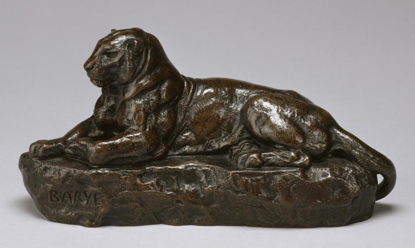Keywords: Antoine-Louis Barye - Panther of India, No 2 - Walters 2744 - Profile.jpg A majestic panther is posed reclining The plaster model Walters 27 46 is coated with wax in which the artist has incised details of the surface as well as his signature The Walters' early records mistakenly listed this sculpture as Panther of Tunis Barye issued two panthers as companion pieces in 1857 and again in 1860 The later casts are larger and were known as Panther of India No 1 and Panther of Tunis No 1 modeled 1830s ; first issued 1857 copper alloy with medium brown patina with black in recesses cm 9 8 20 3 6 7 accession number 27 44 12855 William T Walters Baltimore date and mode of acquisition unknown Henry Walters city Baltimore Walters Art Museum Henry Walters Acquired by William T Walters Signature Cast through from model BARYE; Number Painted inside in white W 43 The Allure of Bronze The Walters Art Gallery Baltimore 1995 Untamed The Art of Antoine-Louis Barye The Walters Art Museum Baltimore; Philbrook Museum of Art Tulsa; The Henry Morrison Flagler Museum Palm Beach 2007-2008 The Works of Antoine-Louis Barye American Art Gallery New York New York 1889-1890 place of origin Paris France Walters Art Museum license Sculptures by Antoine-Louis Barye Media contributed by the Walters Art Museum needs category review Sculptures in the Walters Art Museum |