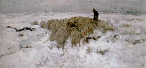View Original:Anton_Mauve_-_Kudde_schapen_met_herder_in_de_sneeuw.jpg (1200x554)