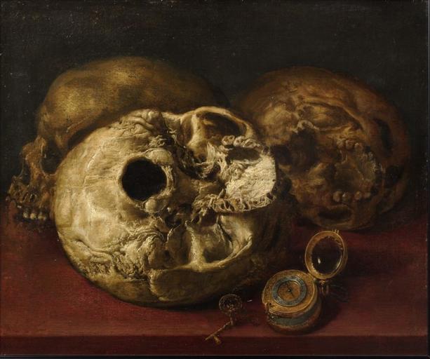 | Keywords: Antonio de Pereda y Salgado 005.jpg Artwork Creator Antonio de Pereda y Salgado La obra representa tres calaveras humanas estando dos de ellas colocadas de perfil y la que aparece en primer plano boca abajo ~ 1660 Oil on canvas Size cm 39 5 33 Institution Museo de Zaragoza http //ceres mcu es/pages/Main object history credit line accession number 10644 http //www museodezaragoza es/barroco/ PD-old-100 painting mythological Spanish 1601-1650 Paintings of Vanitas in Spain 17th-century paintings of Vanitas Still life paintings by Antonio de Pereda y Salgado 17th-century paintings in the Museum of Zaragoza Watches in art WGA form painting WGA type mythological WGA School Spanish WGA time period 1601-1650 Files uploaded by Shakko from various sources |