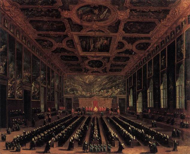 | Keywords: Antonio Diziani - The Sala del Maggior Consiglio, Doge's Palace - WGA06352.jpg Artwork Creator Antonio Diziani between 1758 1763 Oil on canvas size cm 155 187 Institution Gemäldegalerie Berlin object history credit line accession number WGA link 6352 http //www wga hu/art/d/diziani/antonio/ducale jpg http //www wga hu/html/d/diziani/antonio/ducale html PD-old-100 painting interior Italian 1751-1800 Antonio Diziani Italian 18th-century paintings in the Gemäldegalerie Berlin Diziani 18th-century oil on canvas paintings in Germany WGA form painting WGA type interior WGA School Italian WGA time period 1751-1800 Interior of the Doge's Palace Venice - Sala del Maggior Consiglio Venice in the 1760s Men in rooms in art Paintings of the Doge's Palace Venice |