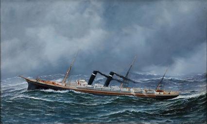 | Keywords: Antonio Jacobsen - 'S.S. New York' at Sea, 1905.jpg Artwork Creator Antonio Jacobsen 1905 oil canvas cm 55 9 91 4 object history credit line Signed dated and inscribed lower right ANTONIO JACOBSEN 1905 / 31 PALISADE AV WEST HOBOKEN N J accession number http //fineart ha com/c/search-results zx N 50+790+231 chkNotSold 0 Ntk SI_Titles Nty 1 Ntt Antonio+Jacobsen Heritage Auctions PD-old-auto-1923 1921 Antonio Jacobsen S S New York ship Steamships in art Images from Heritage Auctions | ||||