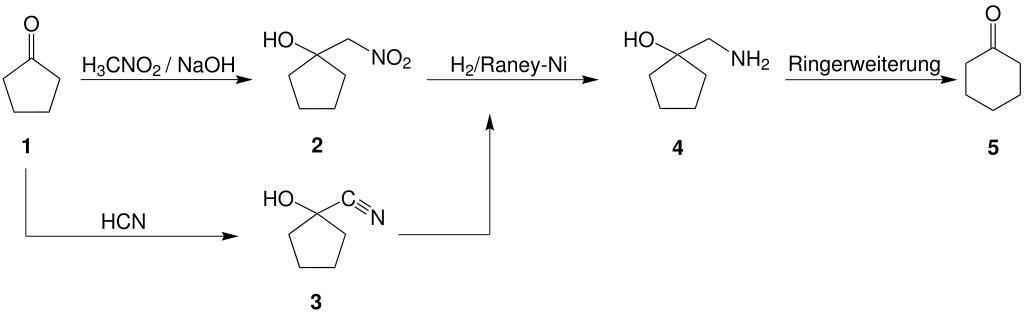 Keywords: Anwendungsbeispiel Tiff-Seite001.svg en Example of the Tiffeneau Ring Expansion with two different solvents de Beispiel für Tiffeneau-Ringerweiterung mit zwei verschiedenen Lösungsmitteln own бе еста 06 01 14 Organic reactions Cc-zero