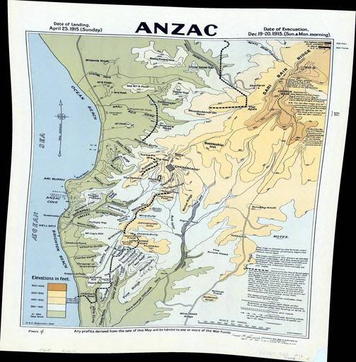 Keywords: Anzac Cove region topographic battlefield map H.E.C. Robinson 1916 (georeferenced).jpg en Topographic map of Galipoli Peninsula Turkey showing ANZAC and Turkish posts trenches tracks and roads and approximate landing places Area covered from north of Bauchops Hill to Wine Glass Ridge from the Agean Sea to East of Hill Q Relief shown by contours and spot heights “ based on Turkish maps 1915 with ANZAC trenches as at September 1915 <br /><br /> Georeferenced to Google Earth using QGIS ver 2 0 1 Datum WGS84 EPSG 4326 North 40 266239° South 40 212001° East 26 320210° West 26 266953° 1916 map face 2014 georeference National Library of Australia http //nla gov au/nla map-vn5448957 MAP G7431 S65 1916 Gerald R Campbell map face ; H E C Robinson publisher ; Brass razoo georeference 40 236294 26 277364 Custom license marker 2014 02 15 PD-Australia overlay Uploaded with UploadWizard Maps of the Battle of Gallipoli Battle of Gallipoli at ANZAC |
