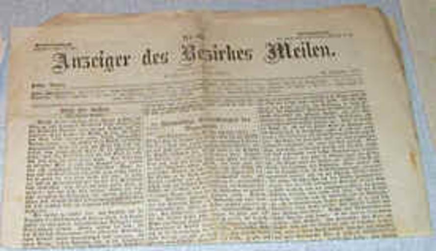 Keywords: Anzeiger des Bezirks Meilen.jpg de Titelseite des Anzeiger des Bezirks Meilen Vorgängerzeitung der Zürichsee-Zeitung Erschienen wöchentlich 1 Mal in Stäfa 1868-1874 2011-10-13 Archiv Druckerei des Anzeigers des Bezirks Meilen PD-old-100 PD-old Uploaded with UploadWizard Newspapers of Switzerland |