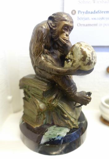 Keywords: Ape on a pile of books, with inscription Eritis sicut deus, N. Herx & Sohne, Wiesbaden, Germany, late 1800s, bronze - Nordiska museet - Stockholm, Sweden - DSC00036.JPG en Exhibit in the Nordiska museet - Stockholm Sweden This work is in the public domain because the artist s died more than 70 years ago 2014-09-13 10 41 15 own Daderot other versions cc-zero Metalwork in Nordiska museet Uploaded with UploadWizard Affe mit Schädel |