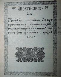 Keywords: Apokrysys tytul.jpg be Тытульная са онка Апок ысіса uk Фото титульної сто інки «Апок исиса» 1598/2012-04-14 Фотокопія з еп одукції в книзі Возняка «Істо ія ук аїнської літе ату и» Львів 1992 Х ыстафо Філалет/Photo by User Vob Custom license marker 2014 04 11 PD-Art Original upload log uk wikipedia page uk wikipedia Apokrysys_tytul jpg wikitable - 20 39 14 April 2012 2000 × 2512 3 08 MB Vob w uk <nowiki>Uploading a self-made file</nowiki> Uploaded with UploadWizard Apokrysis |