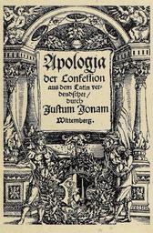| Keywords: Apologie-Justus-Jonas.jpg Apologia der Confession von Justus Jonas d Ä Wittenberg 1535 PD-old Justus Jonas d Ä Apologia der Confession Illustrated title pages from Germany Jonas Apologia der Confession 16th-century woodcuts of people Jonas Apologia der Confession Lutheranism Jonas Apologia der Confession History of Protestantism in Germany 1535 Apologia der Confession |