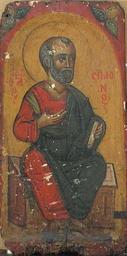 Keywords: Apostol Simon-Sv.Gorgi-Struga.jpg en Icon of Apostle Simon sixth or seventh decade of the 15 th century in St George church in Struga Macedonia http //www kalamus com mk/pdf_spisanija/patrimonium_3/021 20- 2025 20Spisanie 202010 20VIKI 2005 20ok pdf Ох идско-ст ушки иконописни т аги од вто ата половина на 15 век author century 15 PD-Macedonia Icons in St George's Church Struga Paintings of Saint Simon |
