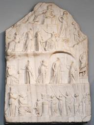 | Keywords: Apotheosis Homer BM 2191.jpg  Archelaos of Priene signed Archélaos de Priène signature So-called Apotheosis of Homer tier Homer seated on a throne; behind him Oikoumene Arsinoe III and Cronos Ptolemy IV ; crouching beside the throne the Iliad and the Odyssey; on the left of the altar the Myth as a child ; on the right of the altar from left to right History Poetry Tragedy and Comedy then Nature Physis Virtue Arete Memory Mneme Good Faith Pistis Wisdom Sophia Upper tier Zeus; middle tiers Muses Probably made in Alexandria Ptolemaic Egypt Registre inférieur Homère assis sur un trône; derrière lui Oikouménè Arsinoé III et kronos Ptolémée IV ; accroupis à côté du trône l'Iliade et l'Odyssée ; à gauche de l'autel le Mythe enfant ; à droite de l'autel de gauche à droite l'Histoire la Poésie la Tragédie et la Comédie puis la Nature Physis la Vertu Arétè la Mémoire Mnémé la Bonne Foi Pistis et la Sagesse Sophia registre supérieur Zeus ; registres intermédiaires Muses Probablement réalisé à Alexandrie between 225 205 BC marble white cm 118 Museum British Museum Main floor Room 22 Alexander the Great the Hellenistic world object history Provenance Bovillæ sur la Via Appia From Bovillæ on the Via Appia credit line Purchased from Messrs May 1819 accession number GR 1819 8-12 1 Cat Sculpture 2191 Marie-Lan Nguyen 2011 other versions thumb Electroplate reproduction by Elkingtons of Birmingham Sculptures of Homer Hellenistic sculptures Reliefs of the Ptolemaic dynasty 3rd-century BC reliefs Ancient art from Alexandria Ancient Greek sculptures in the British Museum Apotheosis of writers Arete mythology Room 22 British Museum Taken with AF-S VR Micro-Nikkor 105mm f/2 8G IF-ED Taken with Nikon D300s |
