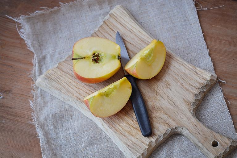 Keywords: apple bio apple cut sliced apple wooden board cutting board knife bio fruit healthy vitamins food frisch delicious ripe eat nutrition natural product close