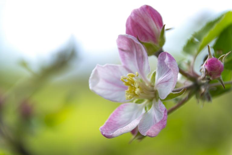 Keywords: apple flower flowering crabapple flower tree fruit twigs nectar spring nature macro closeup pollen