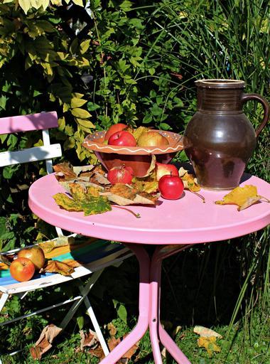 Keywords: apple garden garden table autumn autumn decoration leaves harvest mood nature