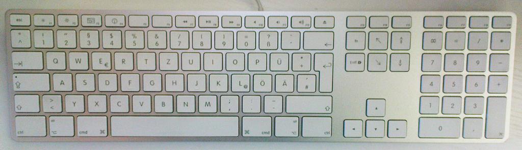 | Keywords: Apple German Aluminium Keyboard.jpg de Apple Keyboard mit Ziffernblock  Tastatur aus eloxiertem Aluminium im Deutschen Layout en Apple Keyboard with Numeric Keypad  keyboard made out of anodized aluminum here with a German keyboard layout sv Apple Keyboard med numerisk del  tangentbord av anodiserat aluminium hรคr med tysk tangentbordslayout own silverbeat 2010-12-17 Silverbeat Cc-zero Apple Inc aluminum keyboard | ||||