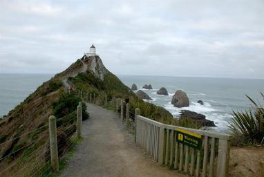 Keywords: Approaching the Nugget Point Lighthouse.jpg The path leading to the Nugget Point Lighthouse Own 2008-04-25 Karora 46 26 50 88 S 169 48 56 54 E zoom 14_region NZ_heading SE Nugget Point Lighthouse Coasts of New Zealand Fences in New Zealand