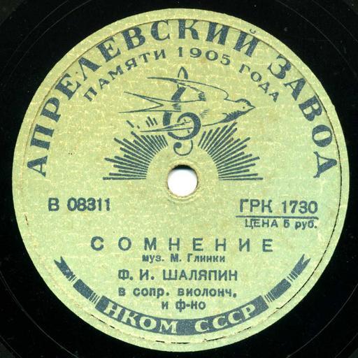 Keywords: Aprelevsky zavod Label 1.jpg en Label of record with the song Doubt by Mikhail Glinka performed by Feodor Shaliapin Produced by Aprelevsky Zavod http //www russian-records com/details php image_id 7779 nav Creator Unknown ca 1939 Photograph of artwork by anonymous workers at Aprelevsky Zavod whose names have not been revealed by 1989 hence being released in the public domain in Russia in accordance to the 2008 copyright law PD-Russia-2008 Aprelevsky zavod |