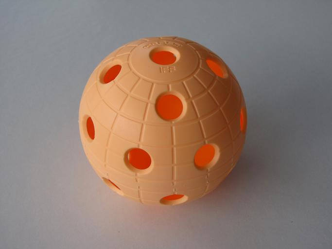 Keywords: Apricot floorball ball.jpg en Official floorball match ball in apricot color own Petey21 2016-05-24 Apricot Balls sports Floorball Cc-zero