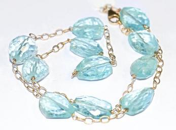 Keywords: aquamarine necklace precious jewelry blue jewellery gem elegant gold fashionable accessory rough stone