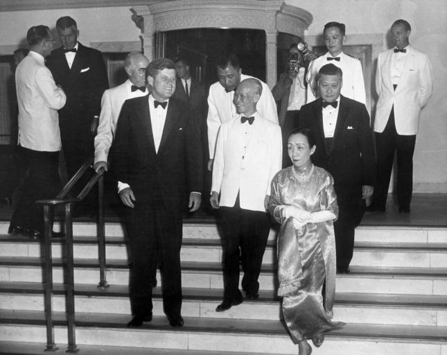 Keywords: AR6721-D. Dinner in Honor of President John F. Kennedy Given by Chen Cheng, Vice President of the Republic of China.jpg President John F Kennedy attends a dinner in his honor given by Vice President of China Chen Cheng at the Mayflower Hotel Washington D C L-R Front row President Kennedy; Vice President Chen; and Vice President Chen ™s wife Tan Xiang Those behind the President include China's Ambassador to the United States George Kung-chao Yeh second row far right and Secret Service agents Gerald Jerry Behn and Milt Wilhite http //www jfklibrary org/Asset-Viewer/Archives/JFKWHP-AR6721-D aspx 1961-08-02 Creator Abbie Rowe PD-USGov John F Kennedy in 1961 Chen Cheng Tan Xiang George Yeh Renaissance Mayflower Hotel Photographs by Abbie Rowe John F Kennedy Presidential Library and Museum Black tie |