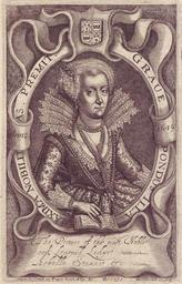 | Keywords: indoor drawing Arbella Stuart (or "Arabella" and/or "Stewart") (1575 - 27 September 1615) was an English Renaissance noblewoman who was for some time considered a possible successor to Queen Elizabeth I on the English throne. Arbella Stuart was a direct descendant of King Henry VII of England. As the only child of Charles Stuart, Earl of Lennox and Elizabeth Cavendish, she was a grandchild of Matthew Stewart, 4th Earl of Lennox and Margaret Douglas, who was, in turn, the daughter of Margaret Tudor, widow of James IV of Scotland, mother of James V of Scotland, and daughter of England's Henry VII. Margaret Douglas was the product of Margaret Tudor's second marriage, to Archibald Douglas, 6th Earl of Angus. Arbella's paternal grandparents, the 4th Earl of Lennox and Margaret Douglas, had two sons: Arbella's father Charles and his older brother, Henry Stuart, Lord Darnley, who became the second husband of Mary I of Scotland, also called Mary, Queen of Scots, and the father of James I of Great Britain. Arbella's maternal grandparents were Sir William Cavendish and Bess of Hardwick. In her final days, as a prisoner in the Tower of London, Lady Arabella Seymour (her married name), refusing to eat, fell ill, and died on 27 September 1615. She was buried in Westminster Abbey on 29 September 1615. She did not aspire to the English throne. Arbella's father died in 1576 when she was still an infant. She was raised by her mother Elizabeth Cavendish until 1582.[2] The death of her mother left seven-year-old Arbella an orphan, whereupon she became the ward of William Cecil, 1st Baron Burghley. During most of her childhood she lived in the protective isolation of Hardwick Hall with her maternal grandmother, the redoubtable Bess of Hardwick, who had been married in 1568 to George Talbot, 6th Earl of Shrewsbury. There were, apparently, periodic visits to the court of Elizabeth I of England and to London, including one that lasted for a few years, from September 1589 to July 1592. Historian David Durant has suggested that, during this period, "In effect Bess was moving the operational centre of her business empire from Derbyshire to London".[3] An extant note in French, written to Lord Burghley in Arbella's Italic hand and addressed on the eve of the Spanish Armada battles, was dated 13 July 1588 and "postmarked" from the Talbots' Coleman Street Residence in London. It is certain proof of the London visits.[4] About 1589, one "Morley" became Arbella's "attendant" and "reader," as reported in a dispatch from Bess of Hardwick to Lord Burghley, dated 21 September 1592.[5] Bess recounts "Morley's" service to Arbella over "the space of three years and a half." She also notes he requested a lifetime stipend from Arbella based on the fact he had "been much damnified by leaving the University"; this has led to speculation that 'Morley' was the poet Christopher Marlowe. For some time before 1592, Arbella was considered one of the natural candidates for succession to the English crown, after her cousin, Queen Elizabeth I (Marshall, 601). However, between the end of 1592 and the spring of 1593, the influential Cecils, Elizabeth's Secretaries of State Lord Burghley and his son Sir Robert Cecil) turned their attention away from Arbella towards James VI of Scotland, regarding him as a preferable successor.[7] Burghley wrote "If my hand were free from pain I would not commit this much to any other man's hand".[citation needed] In 1603, after James's ascension to the English throne, there was a plot (in which Sir Walter Raleigh was alleged to being involved) to overthrow him and put Arbella on the throne; but when she was invited to participate by agreeing in writing to Philip III of Spain, she reported the plan to James. Owing to Arbella's status as a possible heir to the throne, there was discussion of an appropriate marriage for her throughout her childhood. It would have suited the Roman Catholic Church for her to marry a member of the House of Savoy and then take the English throne. A marriage was also mooted with Ranuccio, eldest son of Alexander Farnese, Duke of Parma and Maria of Portugal. According to the Curiosities of Literature by Isaac D'Israeli, this scheme originated with the Pope, who eventually settled on his own brother, a cardinal, as a suitable husband for Arbella; the Pope defrocked his brother, freeing him to marry "Arbelle" (as the Italians spelled her name) and thus claim the Kingdom of England. Nothing came of this plan, and in fact there is no direct evidence that Arbella was either a believing Catholic or a Protestant. In the closing months of Elizabeth's reign, Arbella fell into trouble via reports that she intended to marry Edward Seymour, a member of the prominent Seymour family.[citation needed] This was reported to the Queen by the supposed groom's grandfather, Edward Seymour, 1st Earl of Hertford. Arbella denied having any intention of marrying without the Queen's permission, which she would have required for any marriage to be legal. In 1588, it was proposed to James VI of Scotland that Esmé Stuart, 2nd Duke of Lennox should be married to Arbella, but nothing seems to have come of this suggestion.[8] In 1604, Sigismund III Vasa, King of Poland sent an ambassador to England to ask for Arbella to be his queen. This offer was rejected.[citation needed] There are some indications that Arbella tried to elope in about 1604 and that she fell out of favour with King James I as a result; she was certainly out of sight until 1608, when she was restored to the King's good graces In 1610, Arbella, who was fourth in line to the English throne, was in trouble again for planning to marry William Seymour, sixth in line, grandson of Lady Catherine Grey, a younger sister of Lady Jane Grey and a granddaughter of Mary Tudor, younger sister of King Henry VIII and Arbella's ancestress, Margaret Tudor. Although the couple at first denied that any arrangement existed between them, they later married